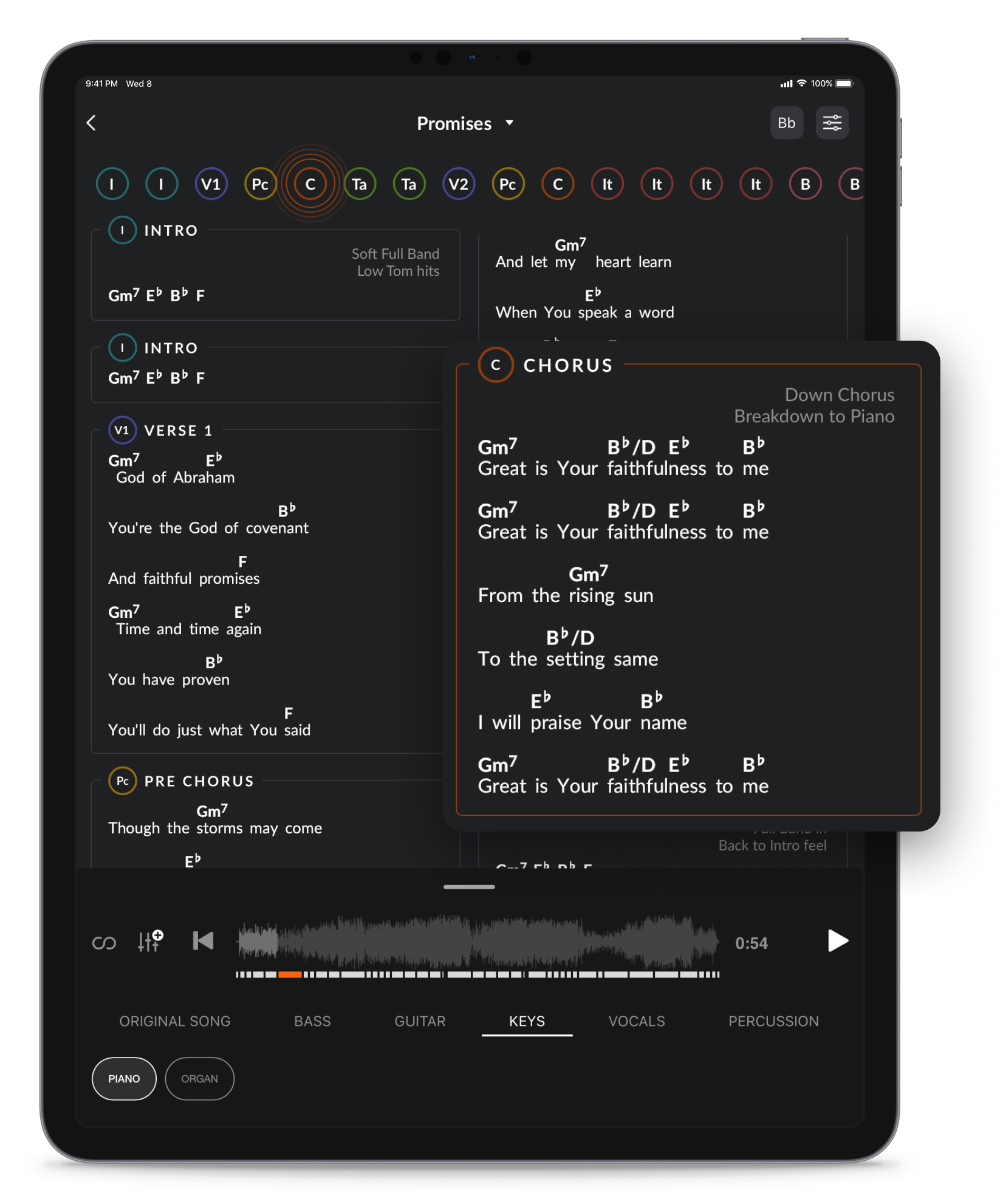 In ChartBuilder you can create a setlist, share it with your team, and allow your team members to customize the charts that are right for them. With ChartBuilder, you can show up to your service prepared, with or without a rehearsal.
